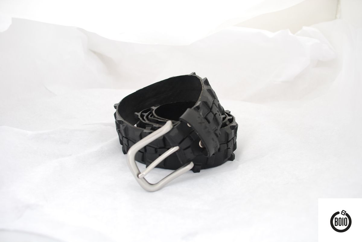 Opasky BOIO se řadí k upcycling výrobkům. Vyrábějí se z vyřazených plášťů horských a silničních kol. Opasek široký 3,5 cm a dlouhý dle přání, skvěle padne ke kalhotám.