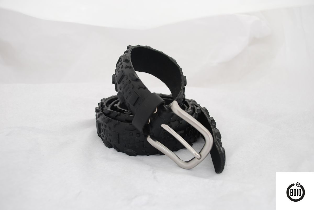 Opasky BOIO se řadí k upcycling výrobkům. Vyrábějí se z vyřazených plášťů horských a silničních kol. Opasek široký 4 cm a dlouhý dle přání, skvěle padne ke kalhotám.
