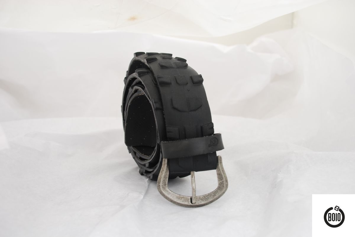 Opasky BOIO se řadí k upcycling výrobkům. Vyrábějí se z vyřazených pláštů horských a silničních kol. Opasek široký 3,5 cm a dlouhý dle přání, skvěle padne ke kalhotám.