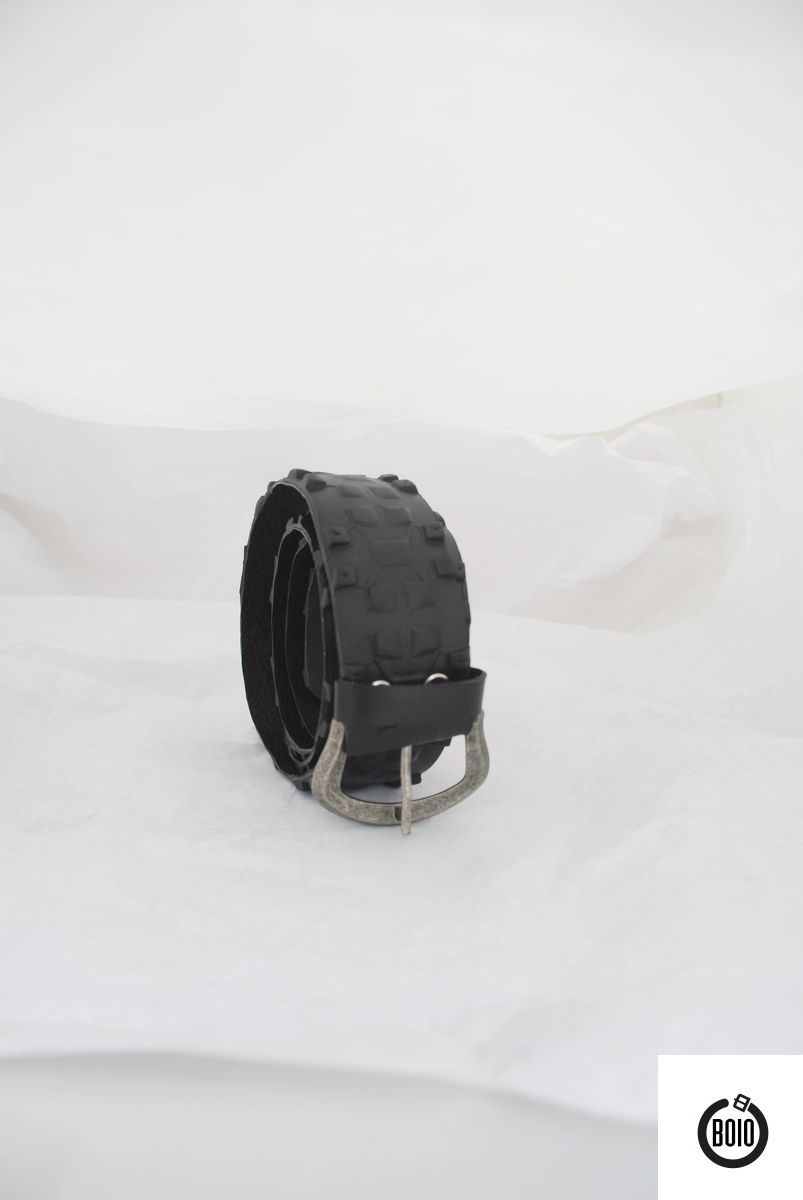 Opasky BOIO se řadí k upcycling výrobkům. Vyrábějí se z vyřazených pláštů horských a silničních kol. Opasek široký 3,5 cm a dlouhý dle přání, skvěle padne ke kalhotám.